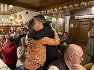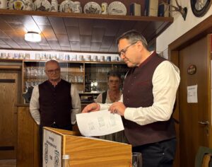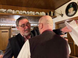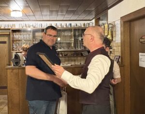 Mathias Uhl betonte, dass sich aufgrund der Notsituation wieder eine schöne starke Freundschaft zwischen den beiden Vereinen entwickelt hat. Er freute sich auf die Einweihungsfeier, die in Kürze stattfinden wird, mit einem lachenden Auge, aber auch mit einem weinenden Auge, da die Diana Hamlar Schützen nun am Freitag wieder ihren eigenen Stammtisch haben werden.